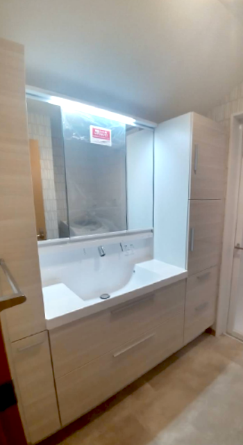 洗面台の入れ替えとともに、壁・天井クロス、床を変更。